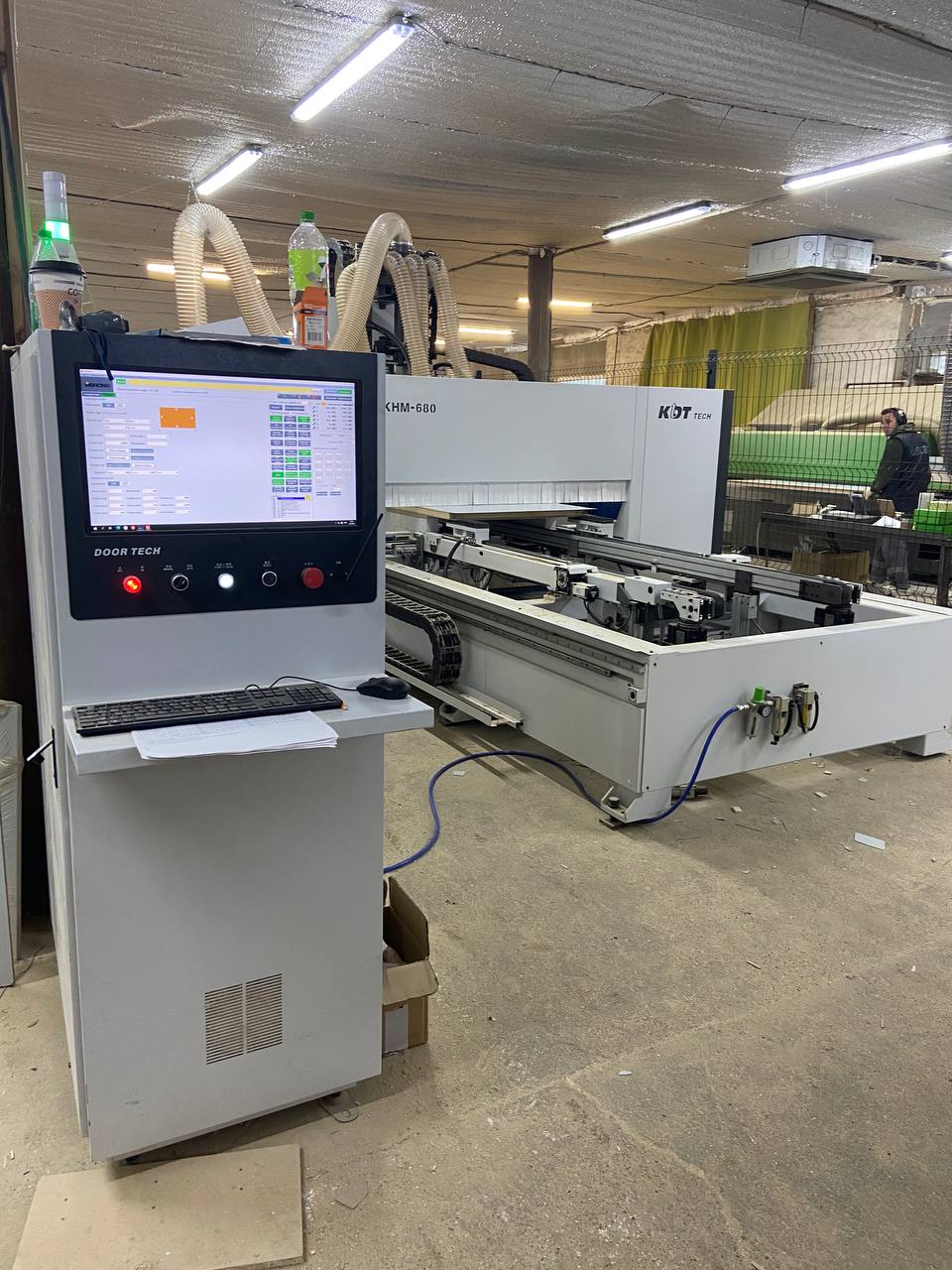 На этот раз мы пополнили парк оборудования обрабатывающим центром с ЧПУ KDT KHM-680. Центр позволяет полностью автоматизировать процесс обработки дверного полотна, осуществляя его торцевание с четырех сторон в необходимые размеры, а также фрезерование в торцах и пласти под последующую установку петель, замков, цилиндровых механизмов и другой фурнитуры для дверей. И это все за одну операцию!